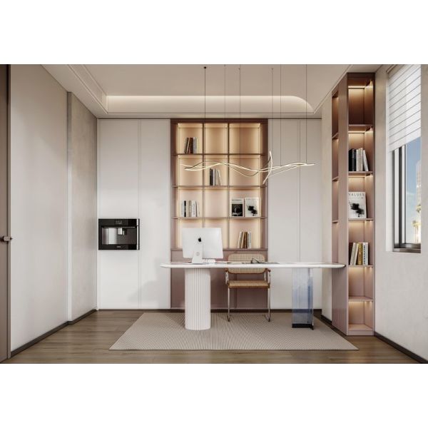 Experience the perfect fusion of aesthetics and functionality with the Fadior stainless steel wardrobe. Designed for modern living, this customized solution integrates an embedded coffee machine, a seamless workspace extension, and sophisticated lighting. The combination of white and soft pink stainless steel panels exudes refined elegance, while the fluted door textures enhance its visual appeal. Open shelving with built-in LED lighting creates an inviting display area, blending storage and style effortlessly. Crafted with high-quality 304 stainless steel, this wardrobe ensures exceptional durability, moisture and fire resistance, and a sleek, contemporary finish that elevates any interior.